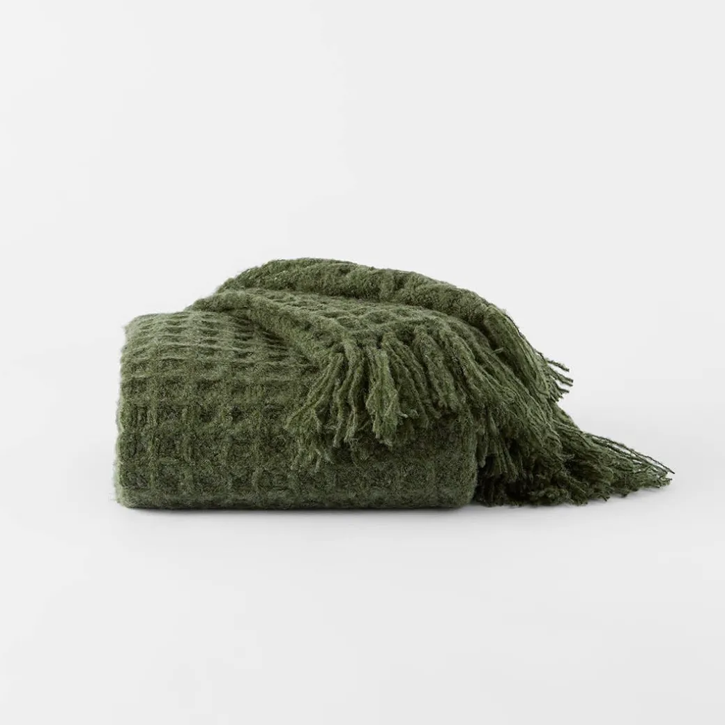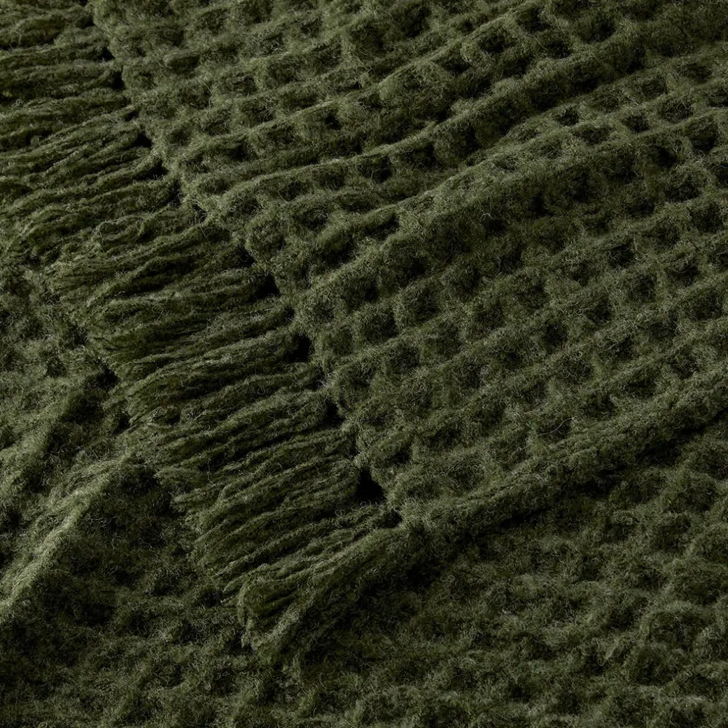 Lounge at home in comfort with the Alec Brushed Waffle Throw in Forest Green. Offering softness and versatility, this throw blanket features a woven waffle texture and knotted fringe details. Available in a range of soothing shades for ease of styling.