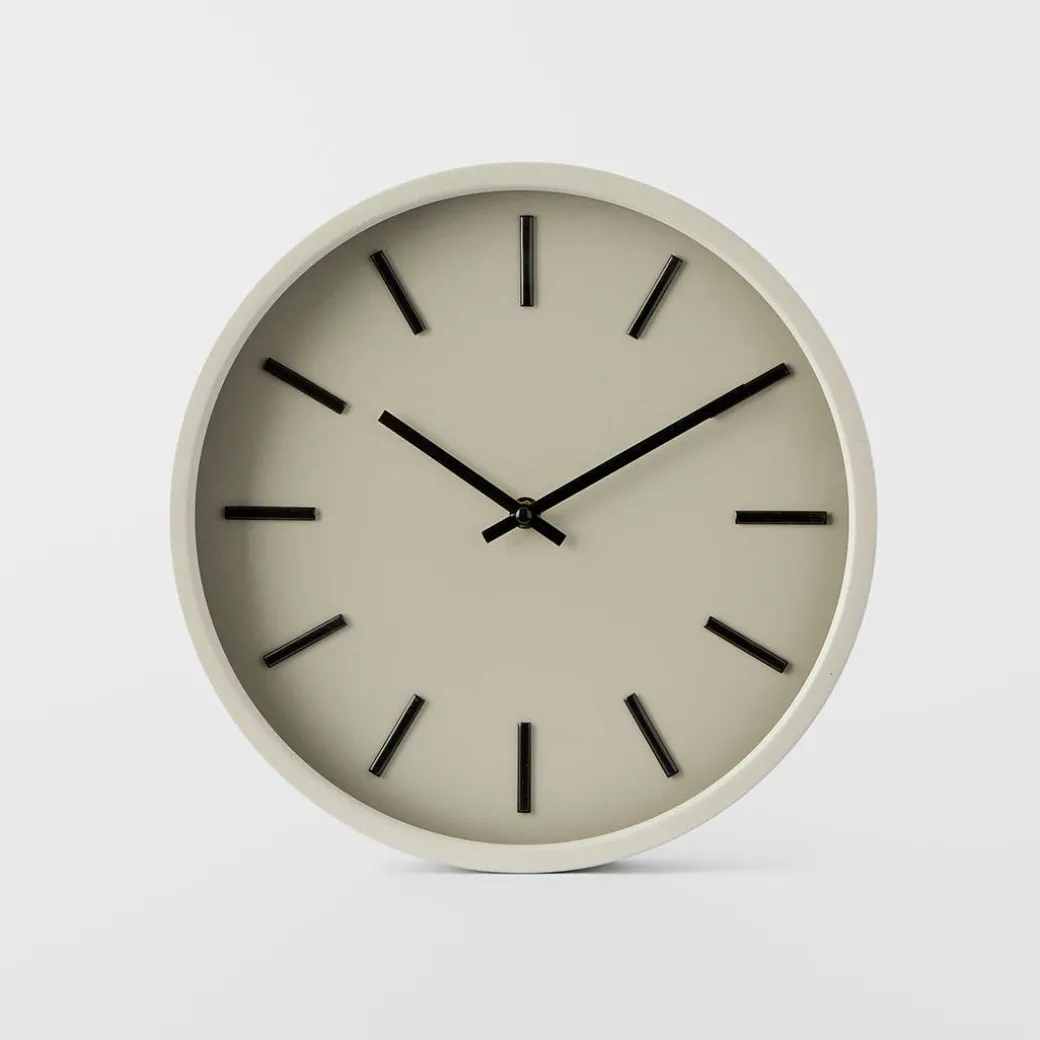 The sleek Charli wall clock in grey features a glass face and metallic accents. Its contemporary design makes it a stylish and functional addition to any room.