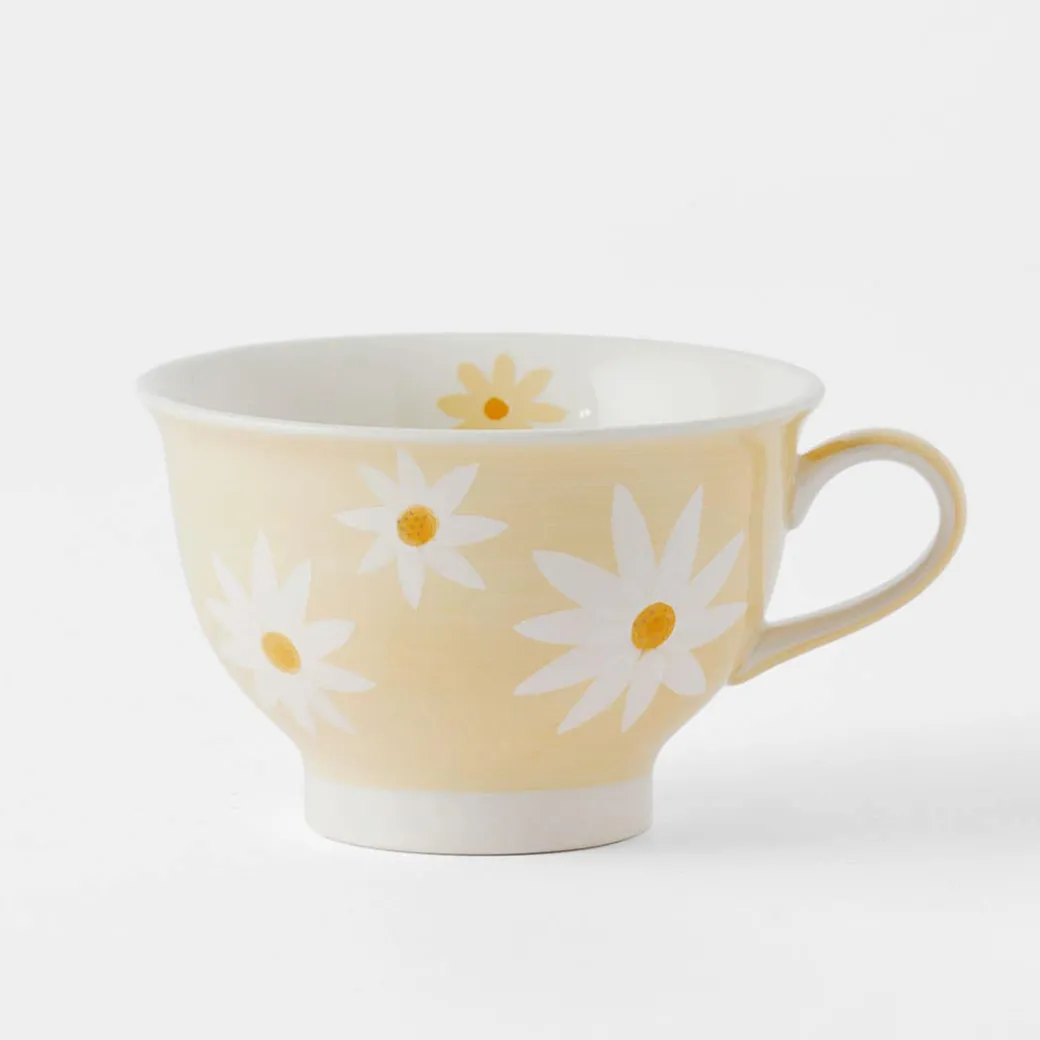 Elevate your morning coffee or afternoon tea with our Marguerite Pedestal Mug. Featuring an adorable daisy design in sunny shades of yellow, this pedestal tea cup is made from durable stoneware and is easy to care for.