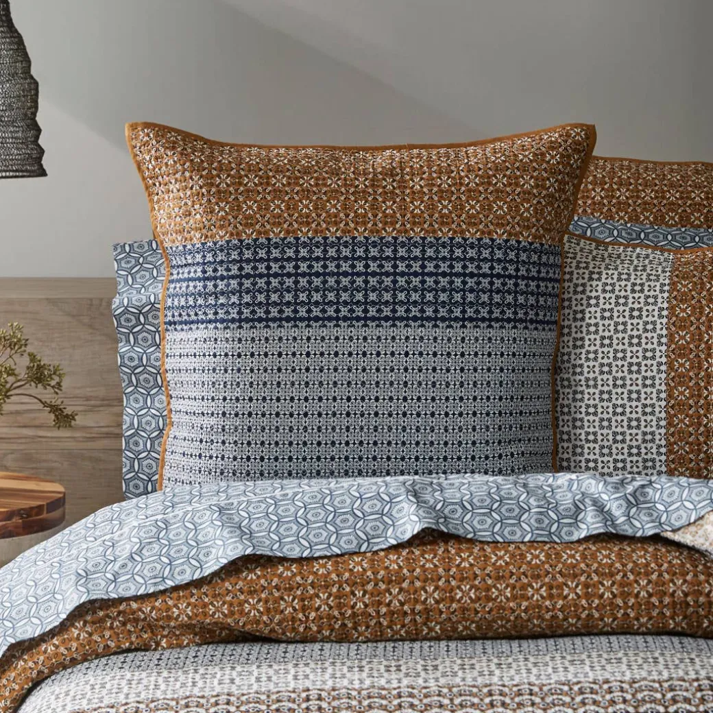 Bring a contemporary look to your bedroom with the Oliver quilt cover. Geometric patterns and warm, earthy shades create a grounded yet bold style. Coordinate with matching pillowcases to complete the look.