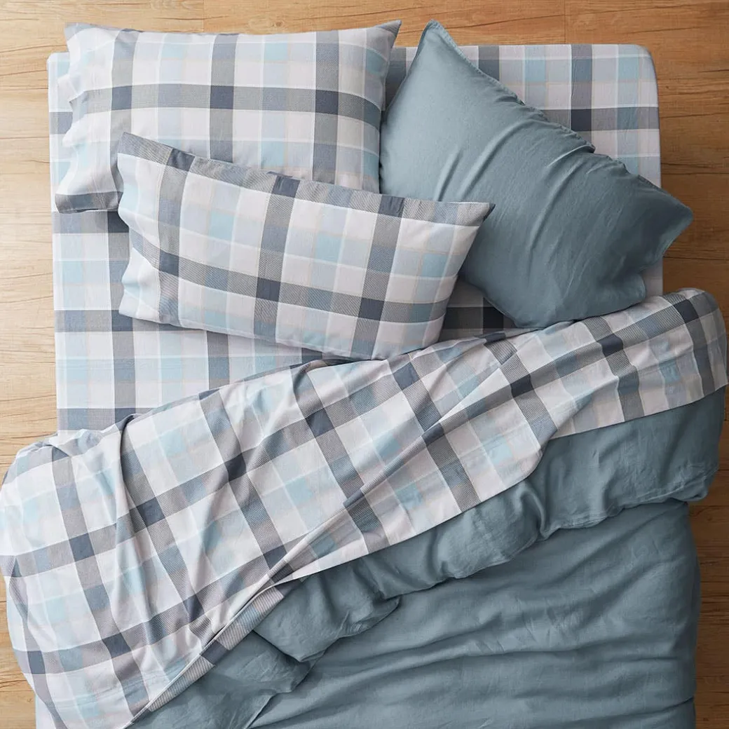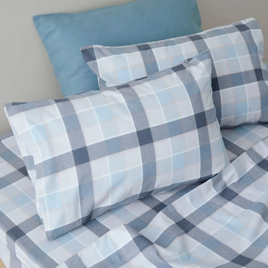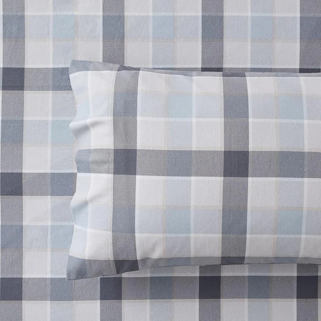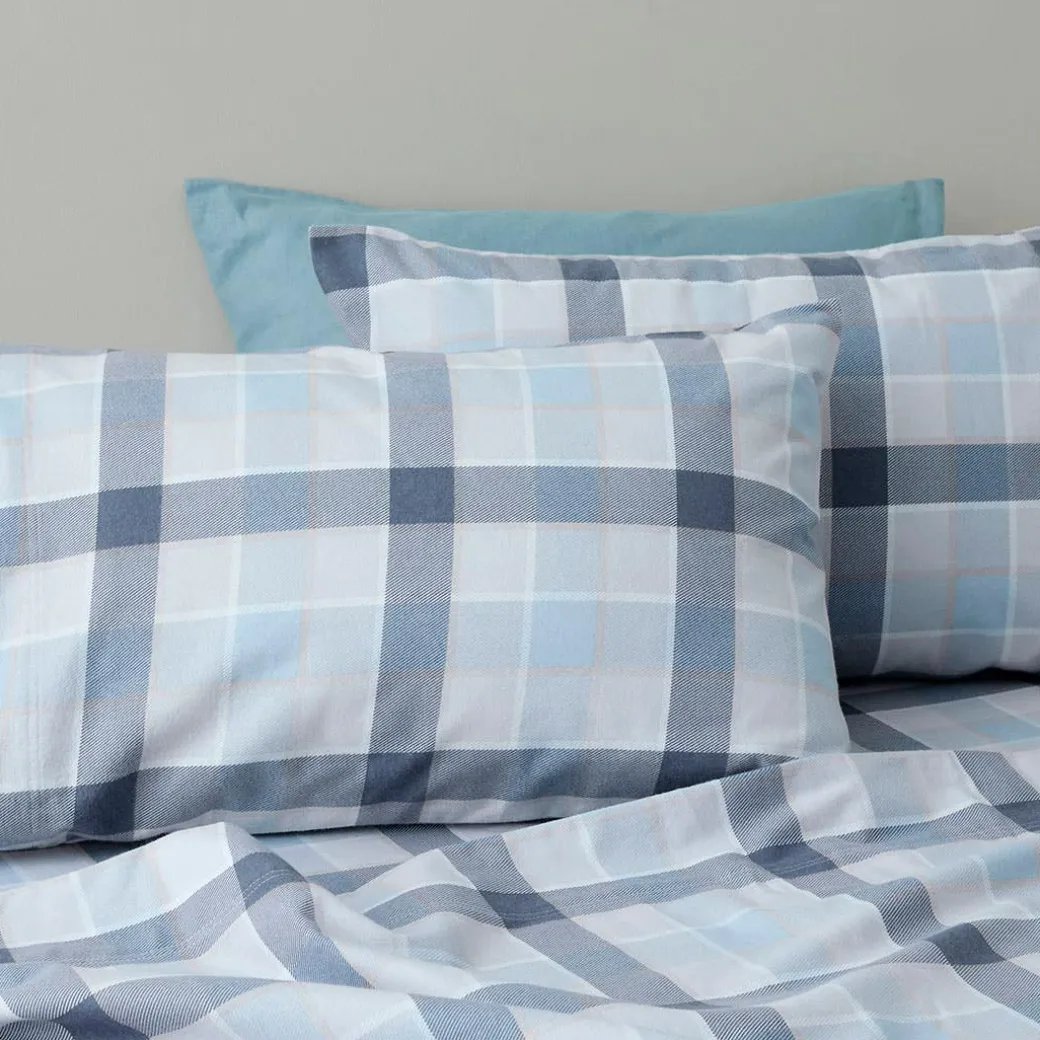 Bring pattern and classic style to your bedroom with the Ramone flannelette sheet set. Featuring a check pattern in shades of grey and stormy blue, this design creates a cosy cabin feel in any space. Finished with a twin needle stitch, our high-quality flannelette cotton has been brushed on both sides for added softness and warmth.