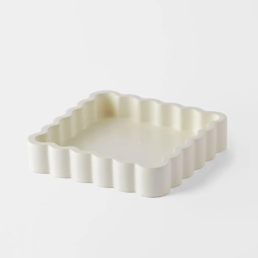 Add a beautiful decorative touch with the Scalloped Square Tray in Cream. Crafted from resin with a scalloped edge, this trinket dish brings style to any space.