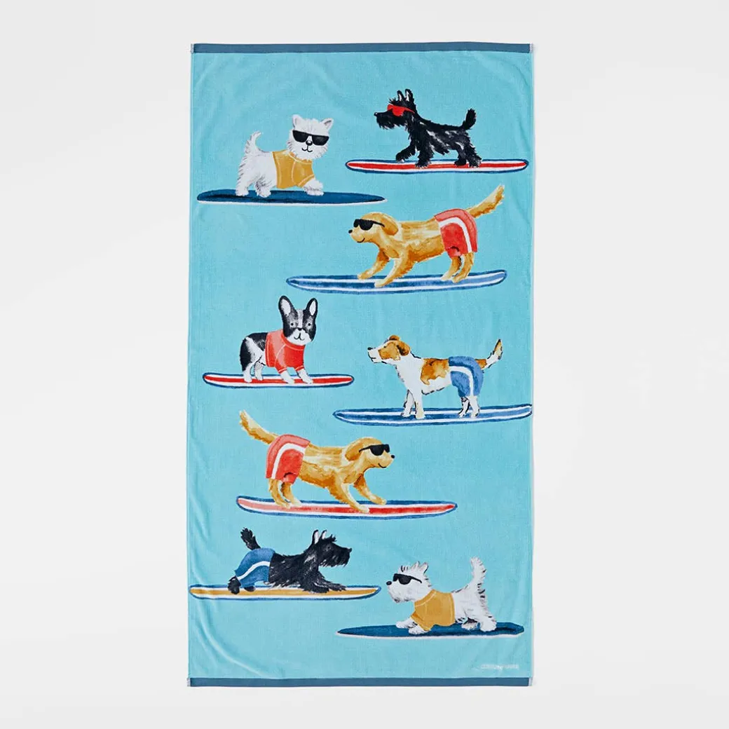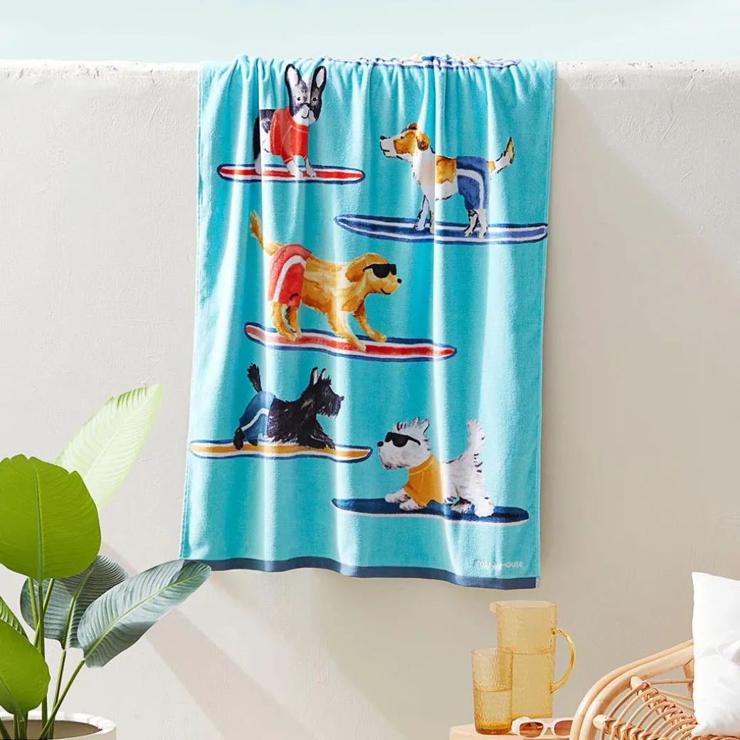 A summer staple, the Morgan & Finch Surfing Dogs beach towel is this season’s must-have accessory. Made from pure combed cotton which has been woven and sheared to produce the softest velour, this luxurious beach towel features playful dogs in a summer-inspired colour palette. Generously sized, the Surfing Dogs beach towel is the ultimate companion for beach trips and pool days.