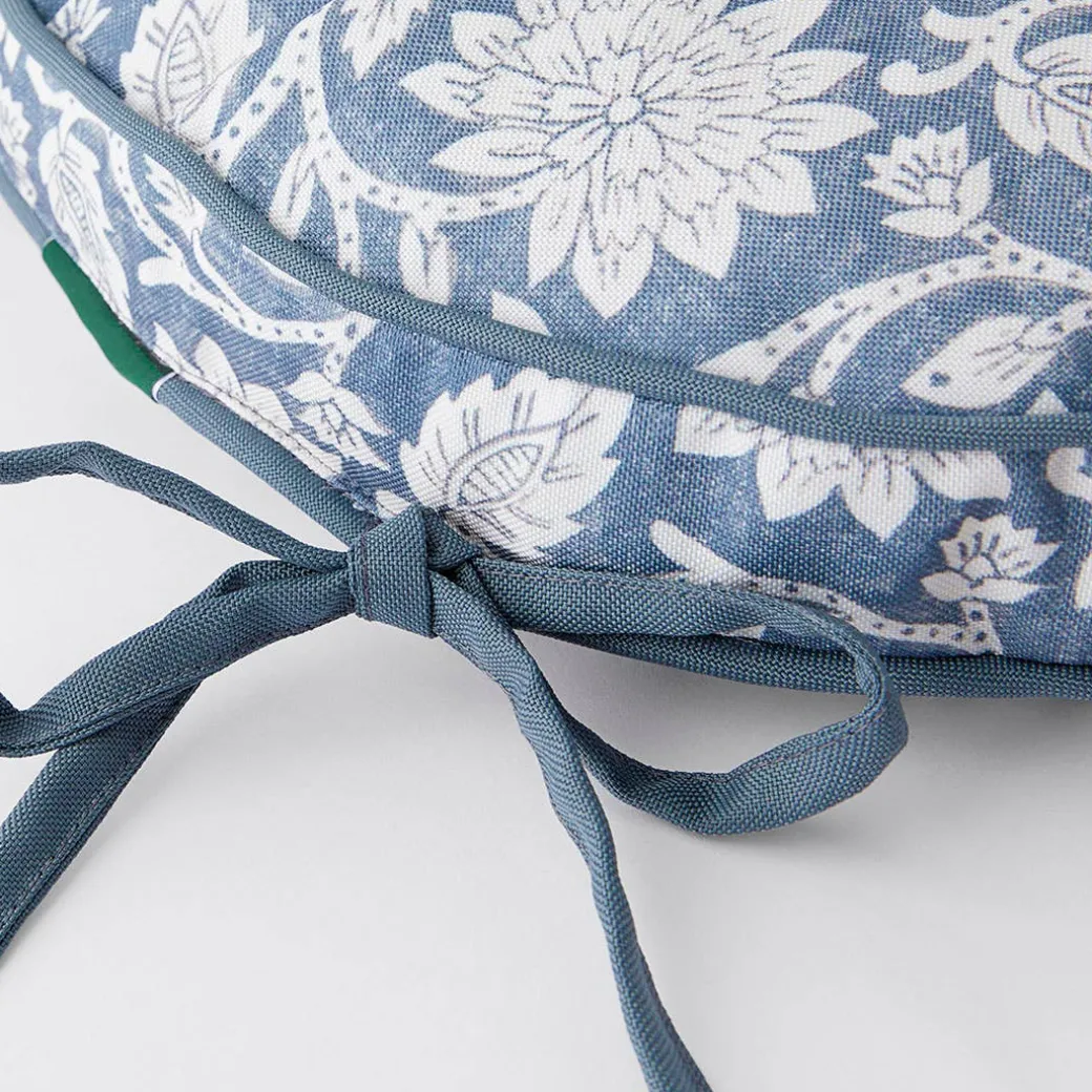 Add instant style and comfort with the Winton Priya Round Chair Pad. This round cushion is covered in UV fade and water-resistant fabric and finished with Paris ties to hold it in place.