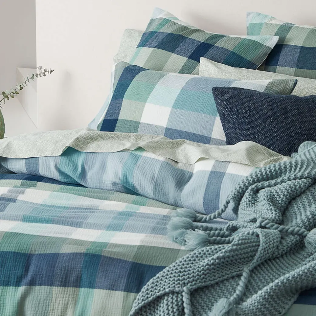 Bring beautiful colour and texture into your bedroom with the Arlo quilt cover in peach and pink. Crafted from cotton muslin with a subtle crinkle texture, this quilt cover features a classic check design in vibrant summer shades. Finished with a plain dye 250 thread count cotton reverse.