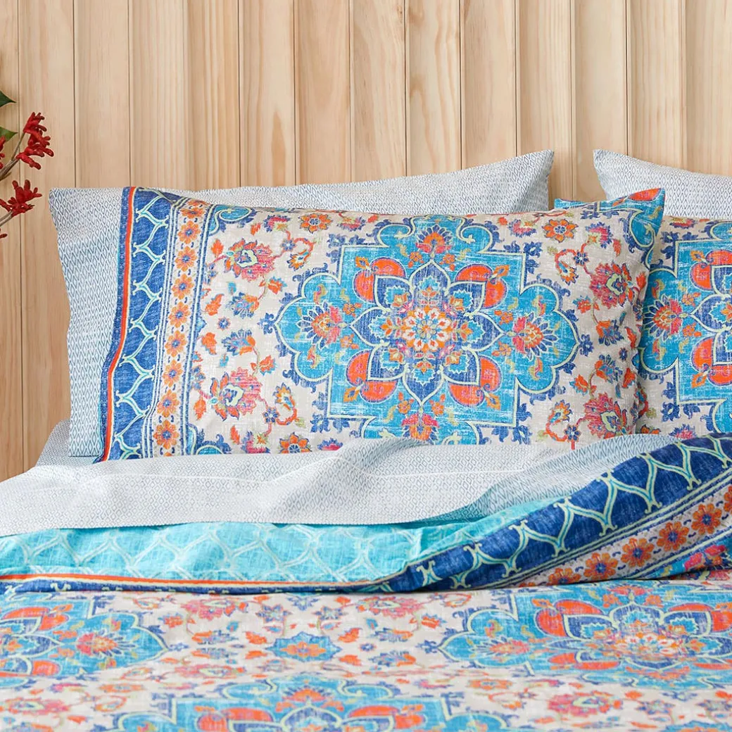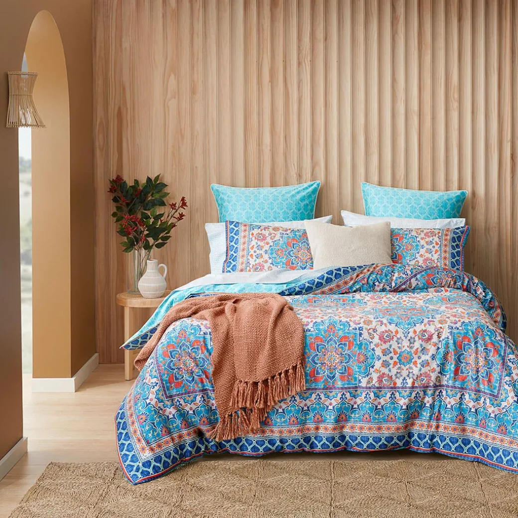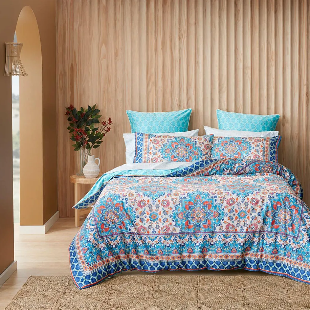 Bringing together a mix of antique and contemporary styles, the Bosphorus quilt cover features traditional detailing reminiscent of Turkish tile patterns. Bold, vibrant hues are softened by subtle variations in the print to create an authentic feel. Coordinate with matching pillowcases to complete the look.