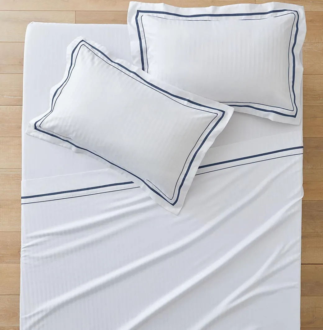 Cambridge 800 TC Egyptian Cotton Flat Sheets – White Navy