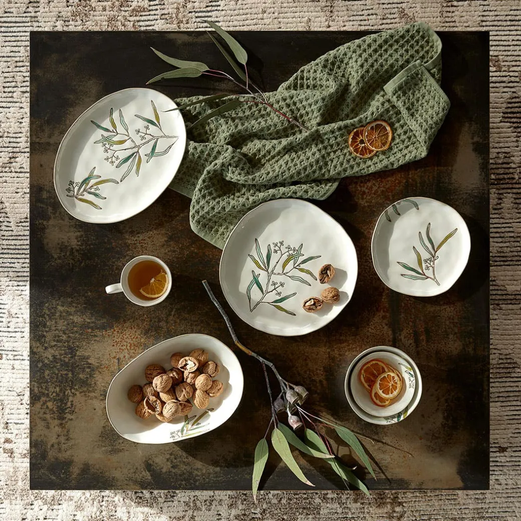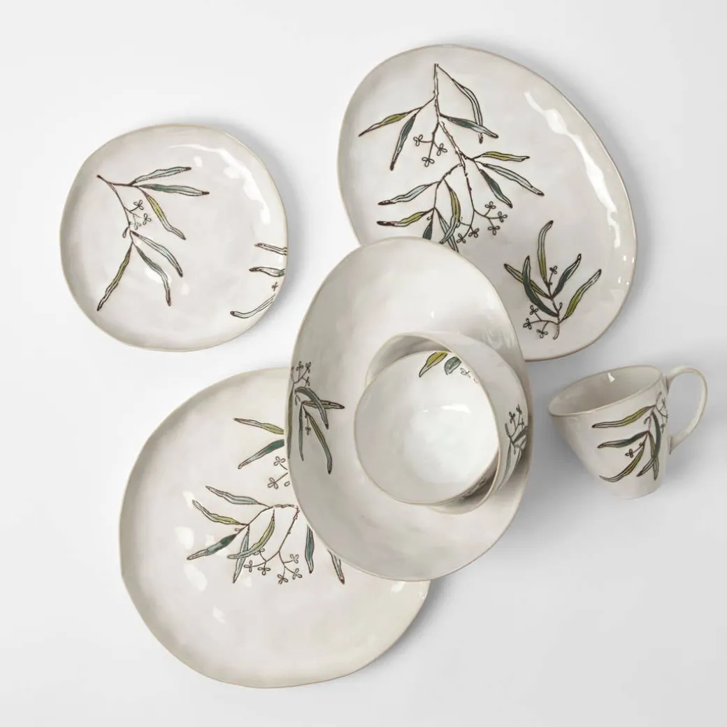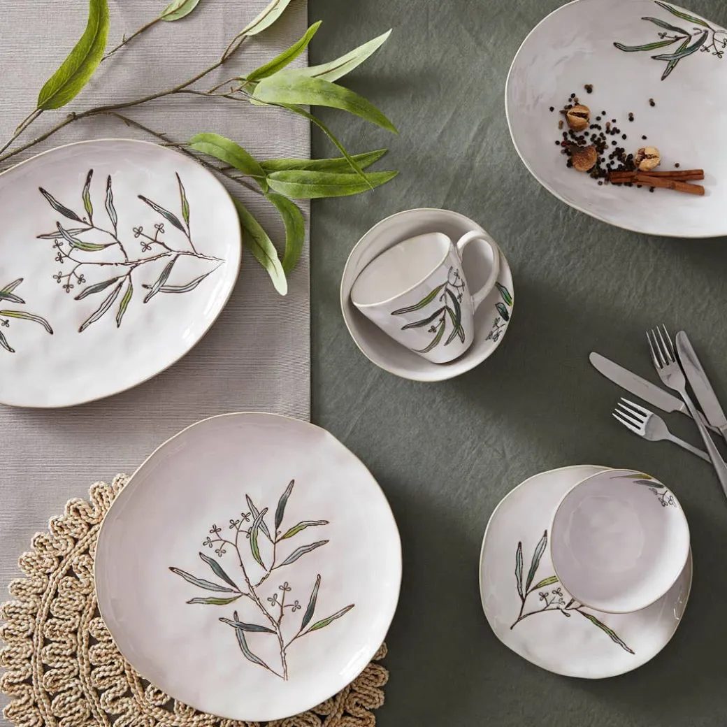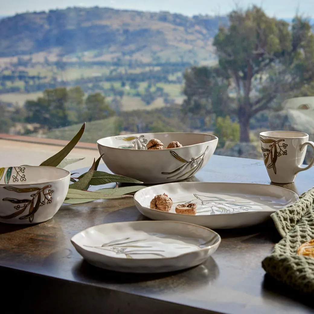 Inspired by Australian nature, the Eucalypt dining range will add a botanical style to your table. Made from stoneware, organic shapes combine with delicately designed Eucalyptus leaves. Perfect for everyday use or special occassions, coordinate all seven pieces for a complete style. ;