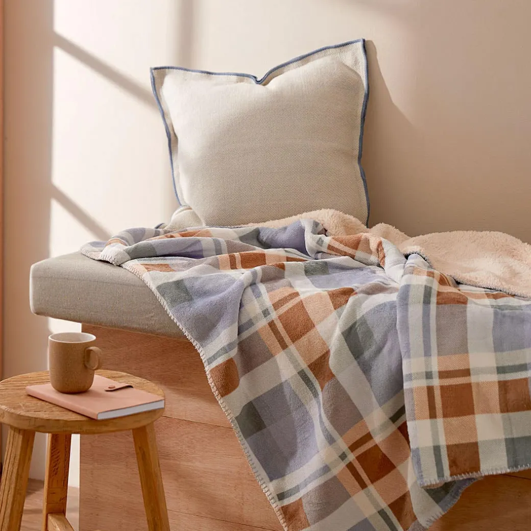Snuggly and soft, the Hemsley Sherpa Throw is the perfect choice for the cooler months. Printed on plush polyester with a sherpa reverse, this throw blanket features a soft check design in shades of rust and blue.