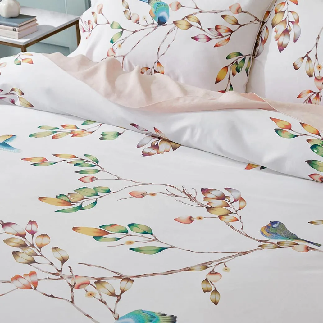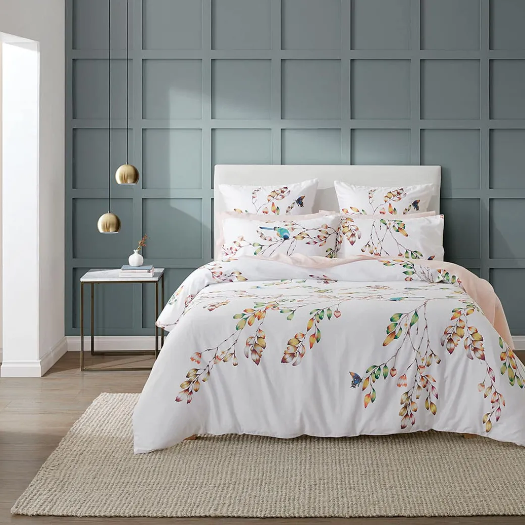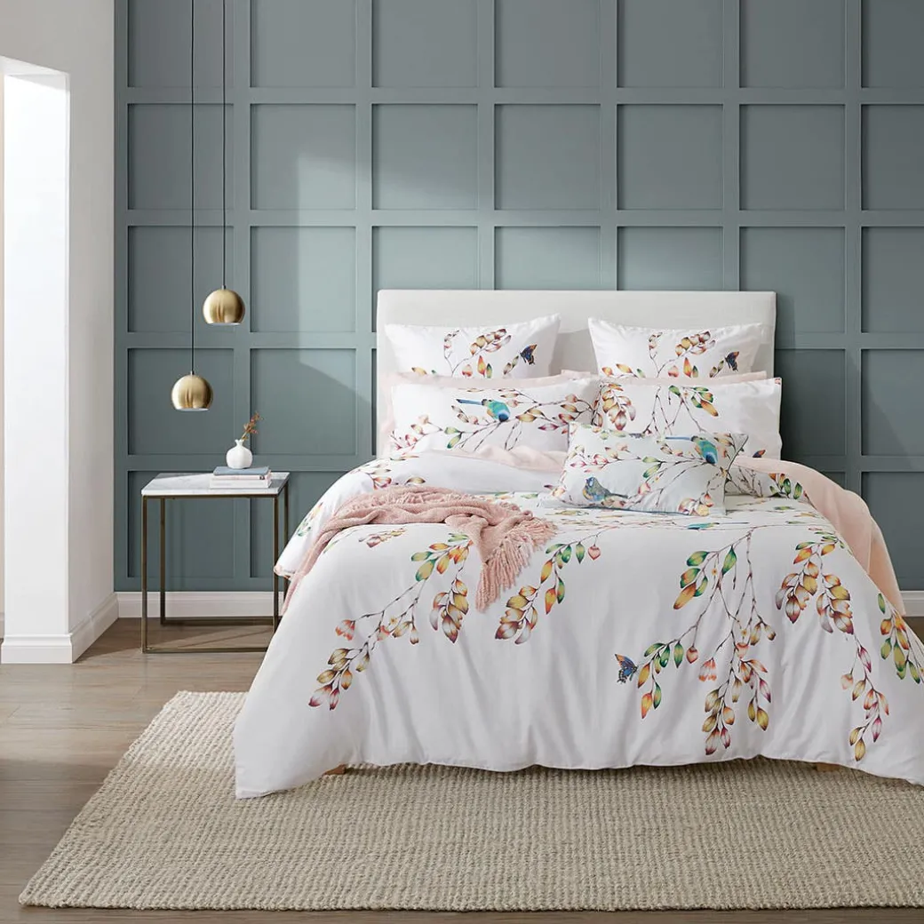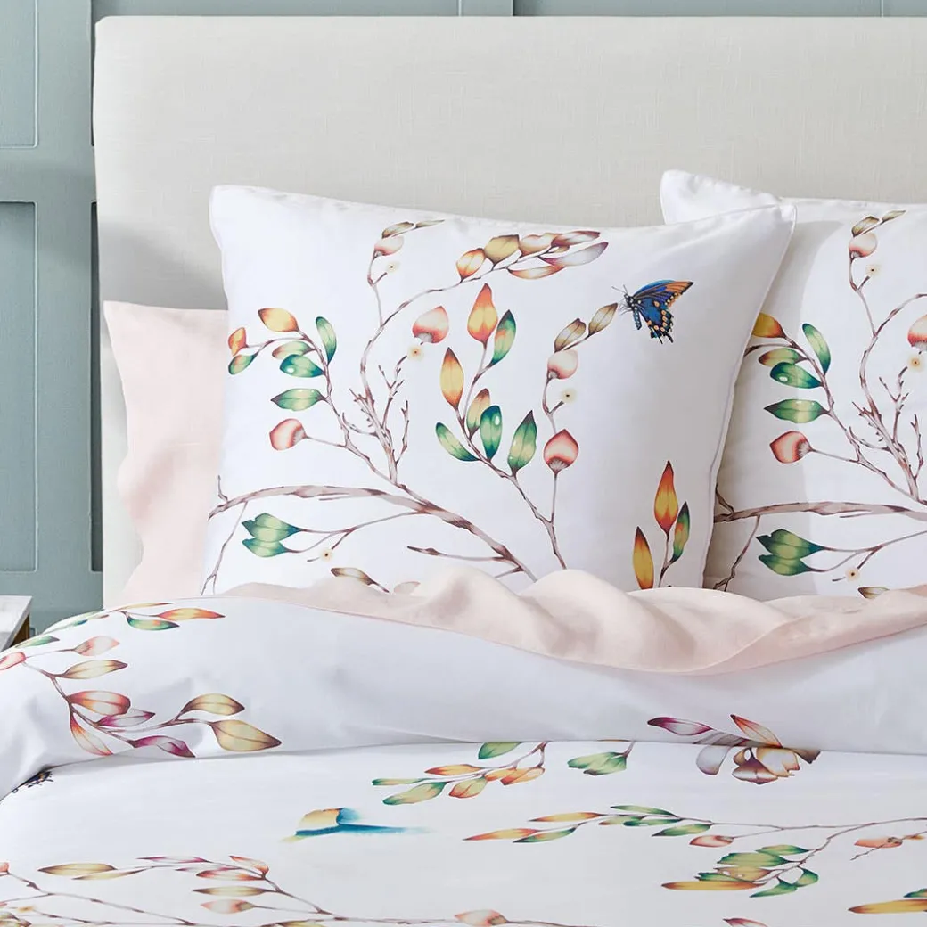 An eclectic fusion of classic mixed with contemporary; Harlequin Design Studio UK offers a dazzling spectrum of designs, textures and colours. Add sophistication and a hint of colour to your bedroom with the Iyanu quilt cover. Featuring trailing branches, birds and butterflies, this design brings a touch of nature to the bedroom. Coordinate with European pillowcases to complete the look.