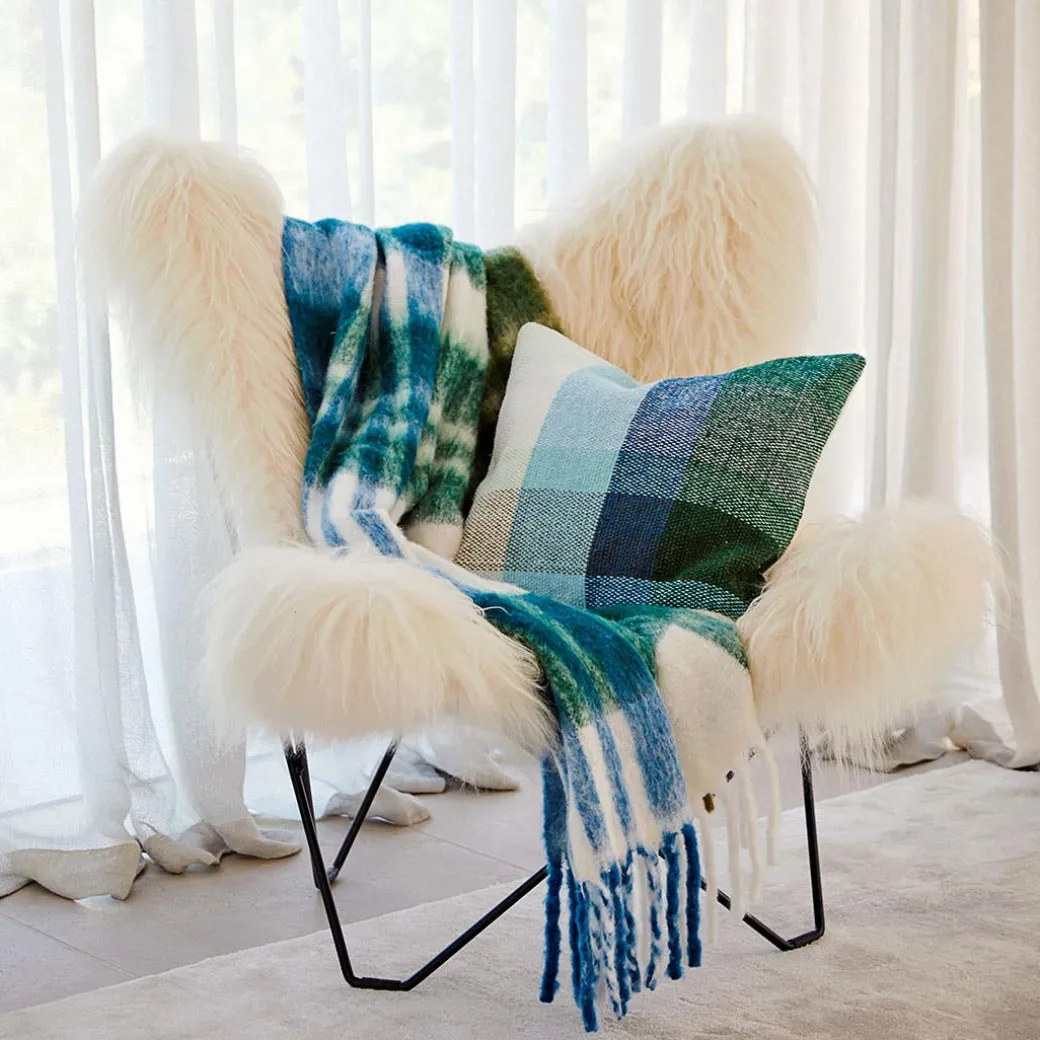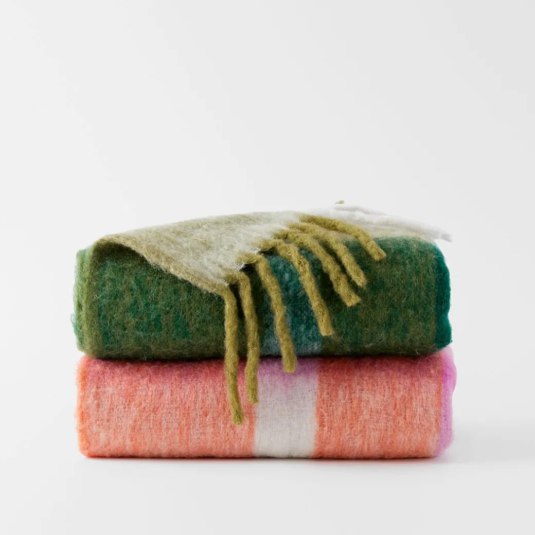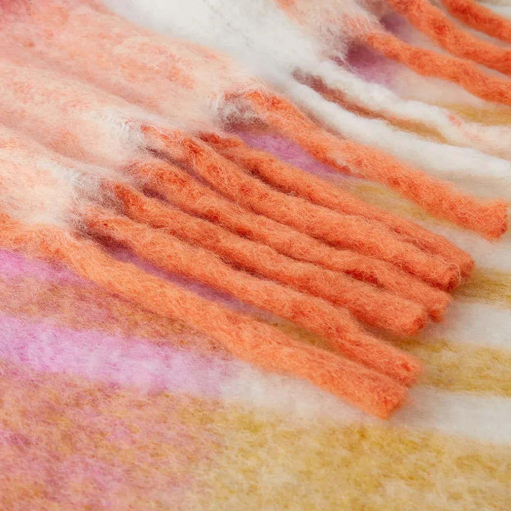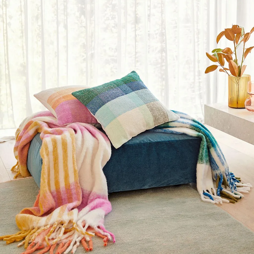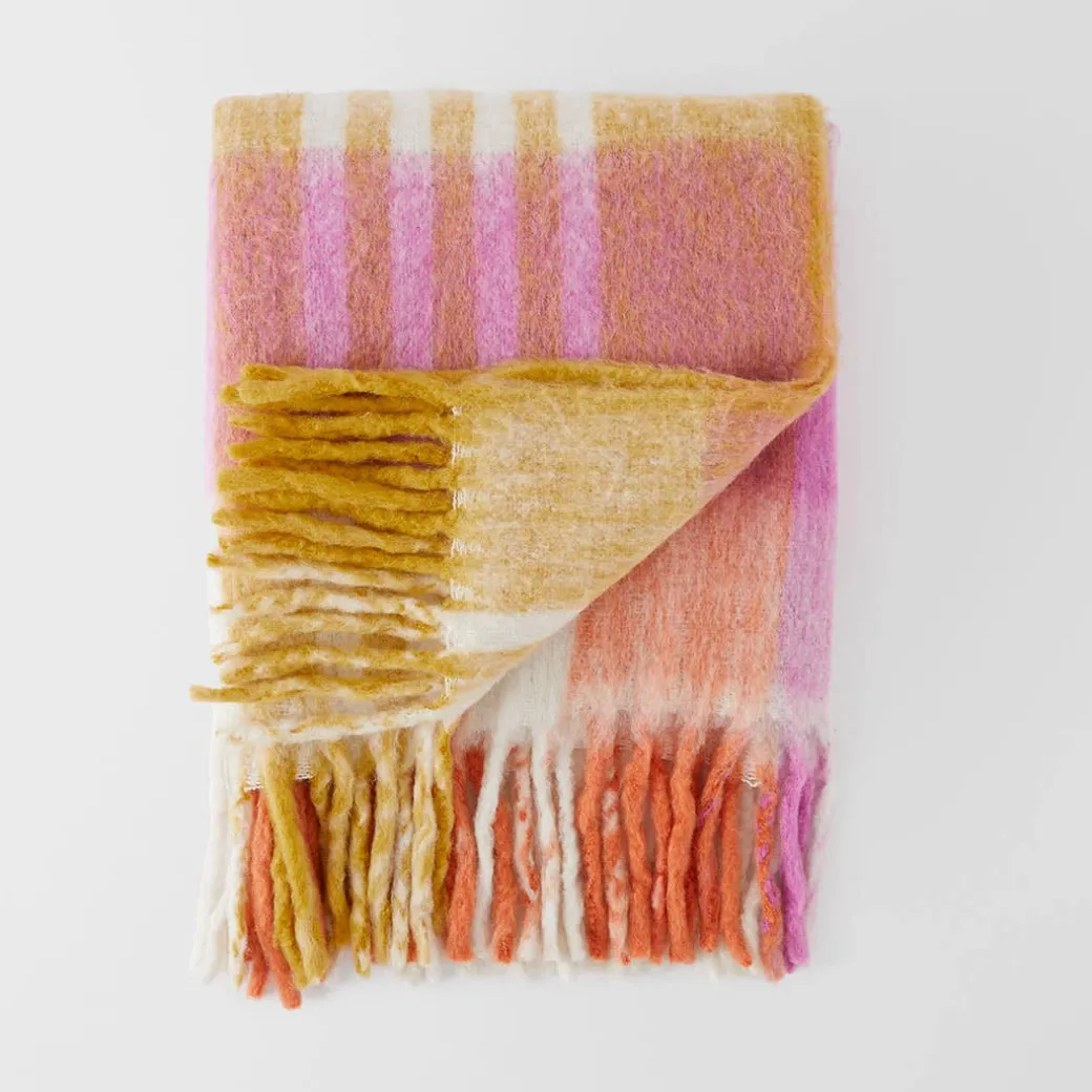 Create a vibrant style with the Juni throw in pink. This faux mohair throw is crafted from a blend of acrylic, wool and nylon for a wonderfully cosy texture. Finished with tassel details, this pink and yellow check adds a warm and welcoming feel to any space.