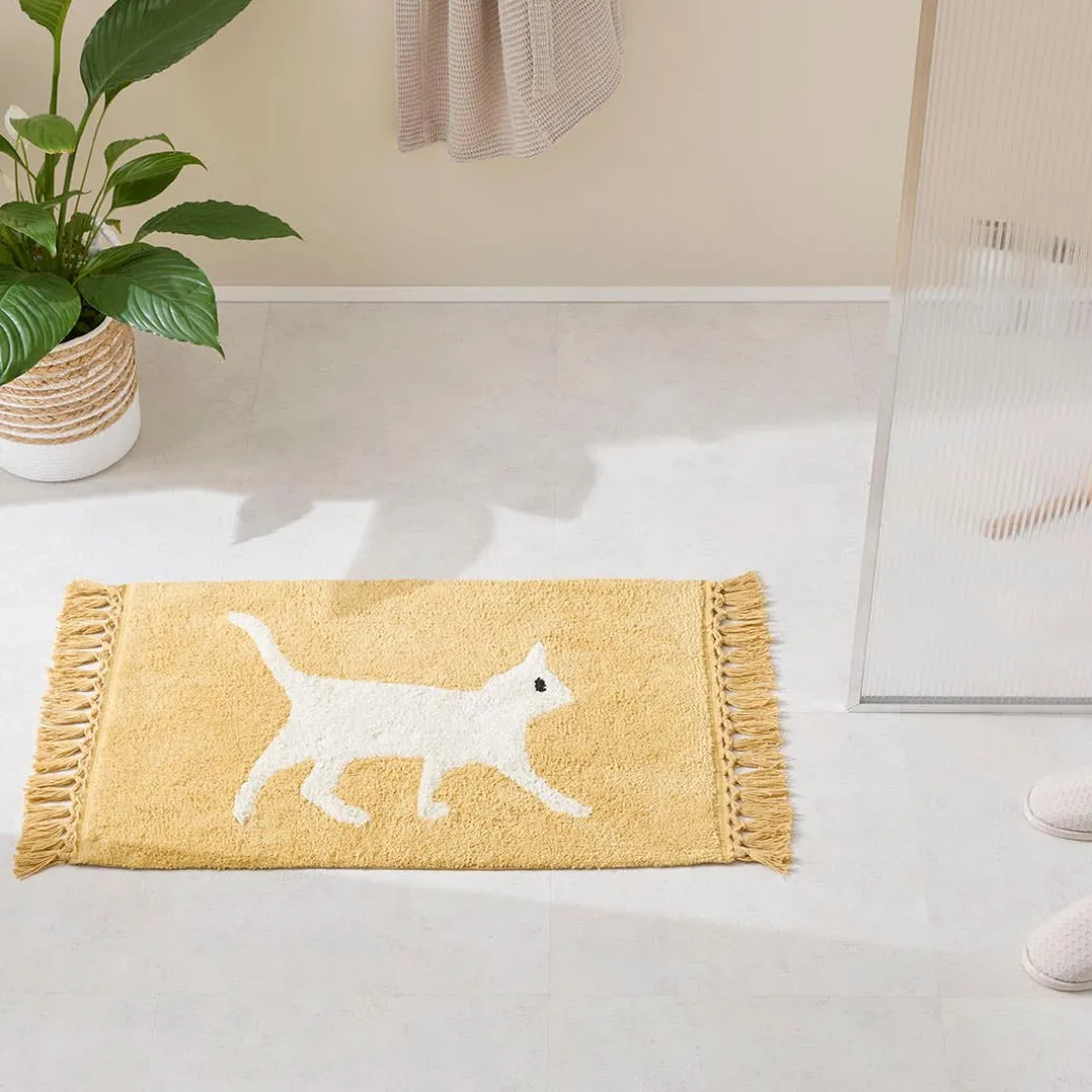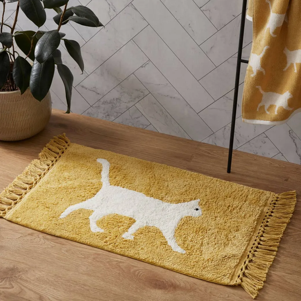 The Milo Cat bath mat will bring a playful style to your bathroom. Featuring a fun playful cat design with tassel detail, this bath mat will add both colour and texture to your bathroom.