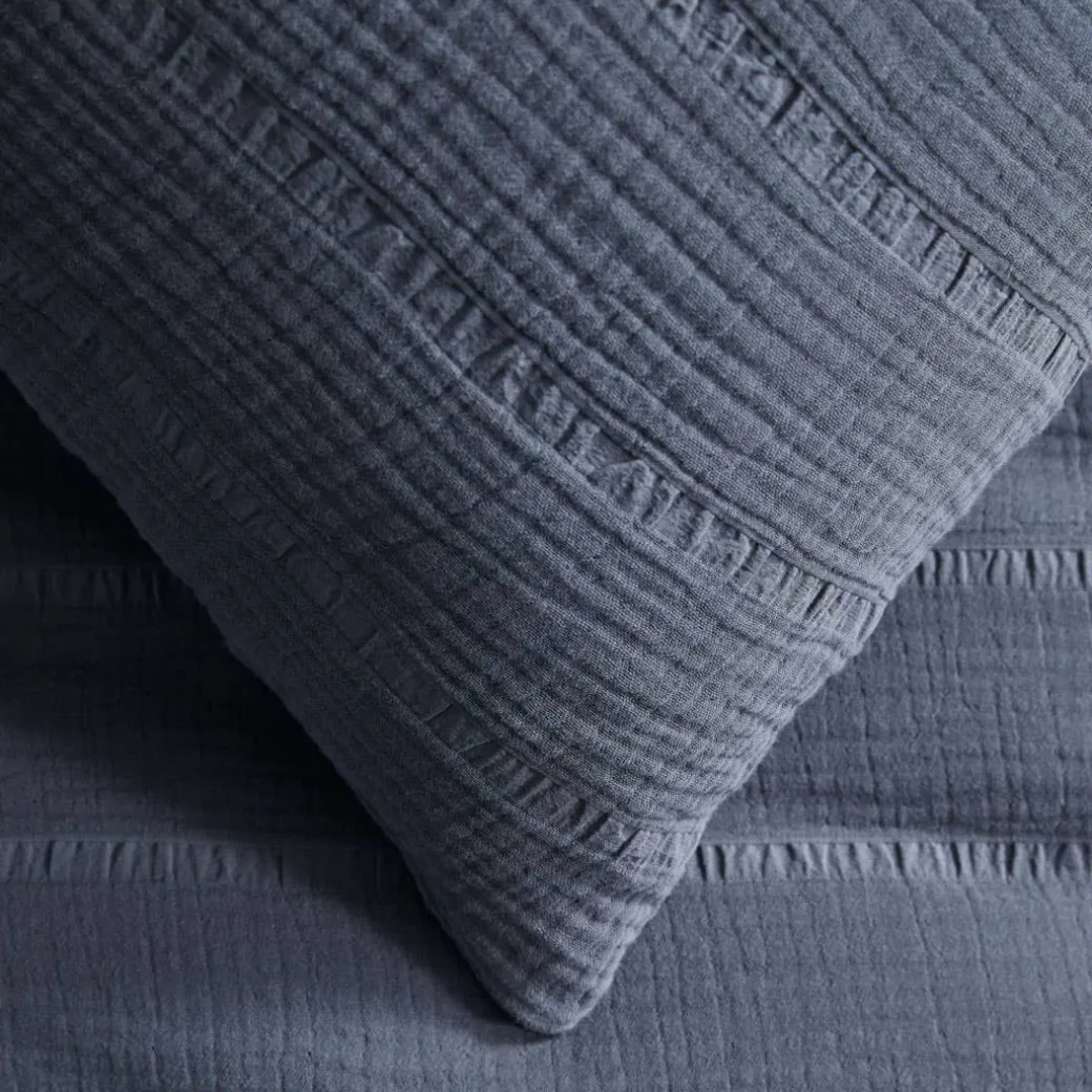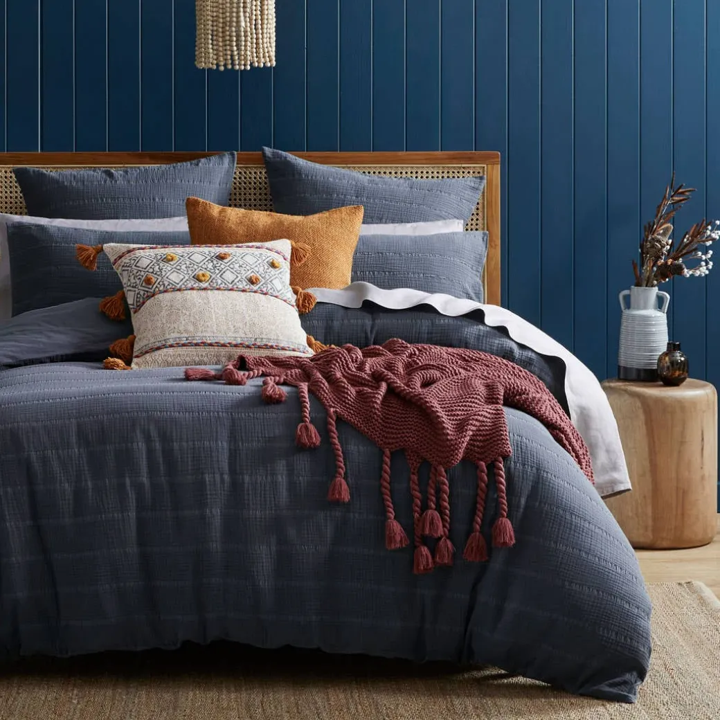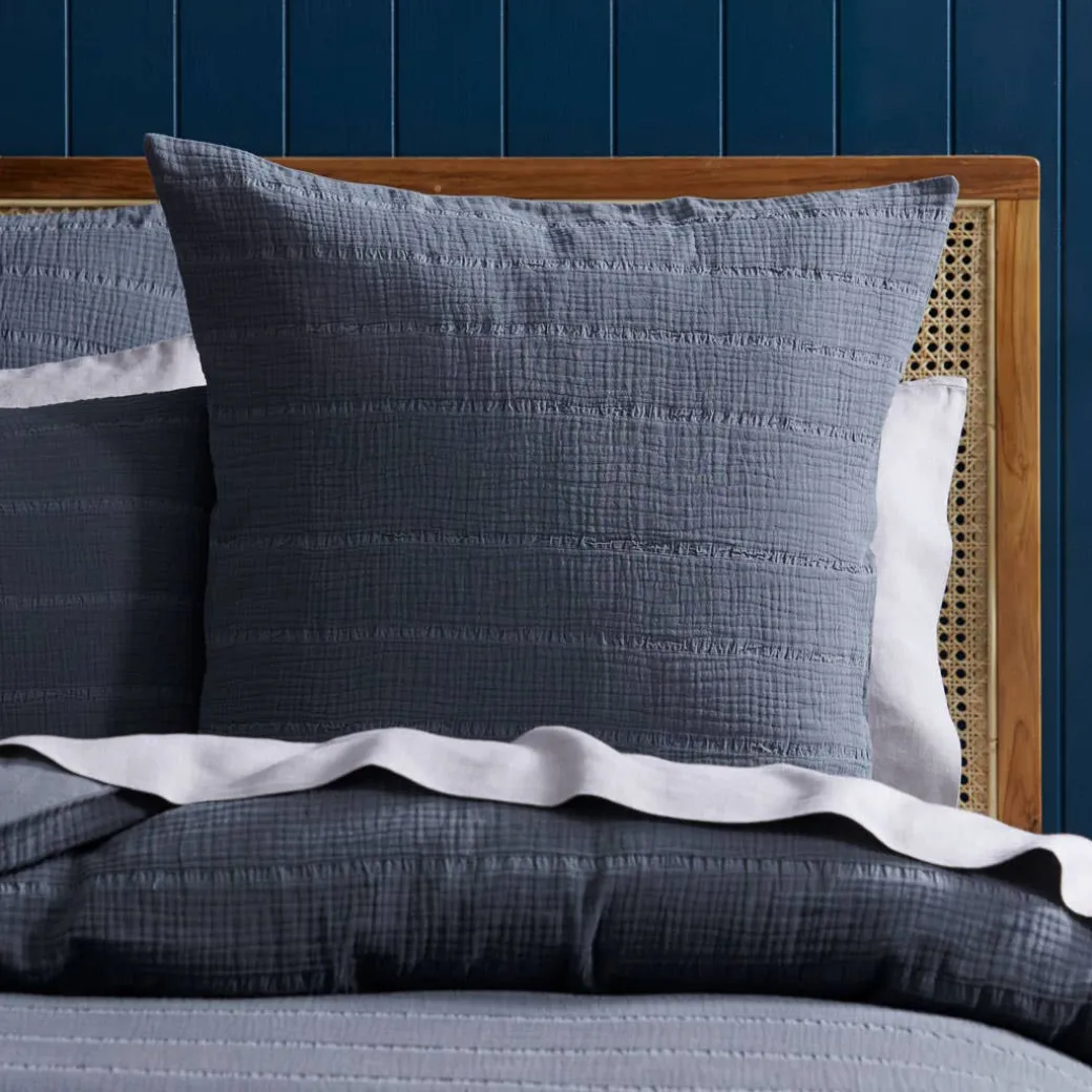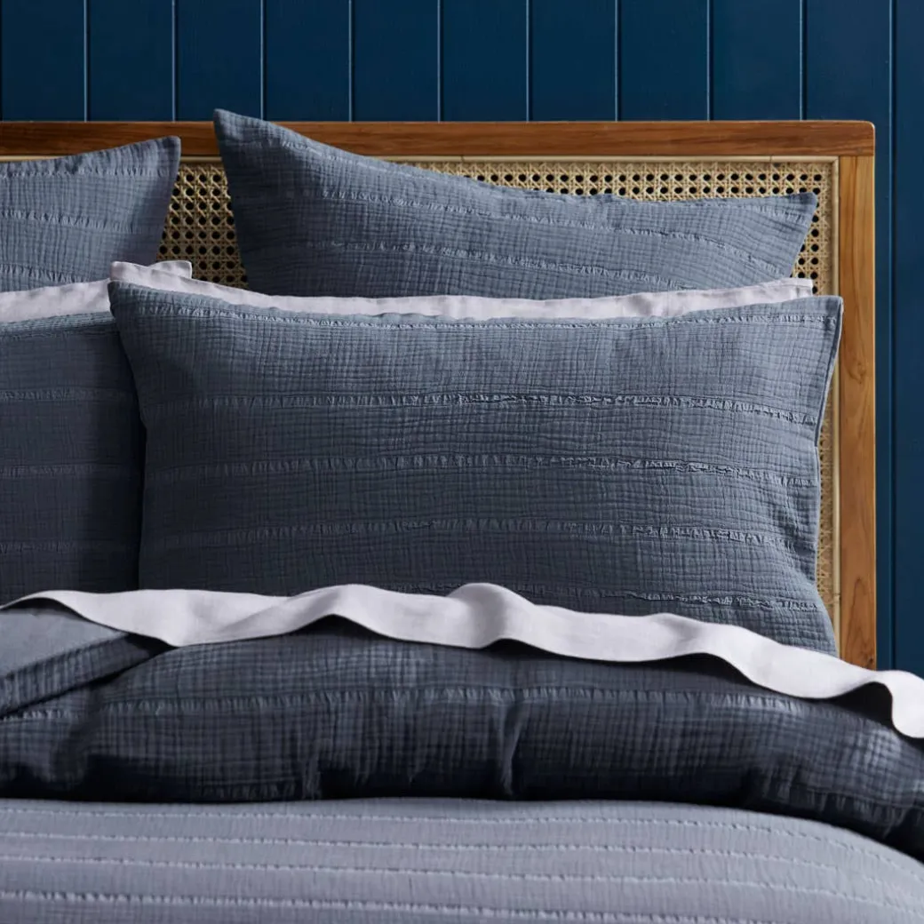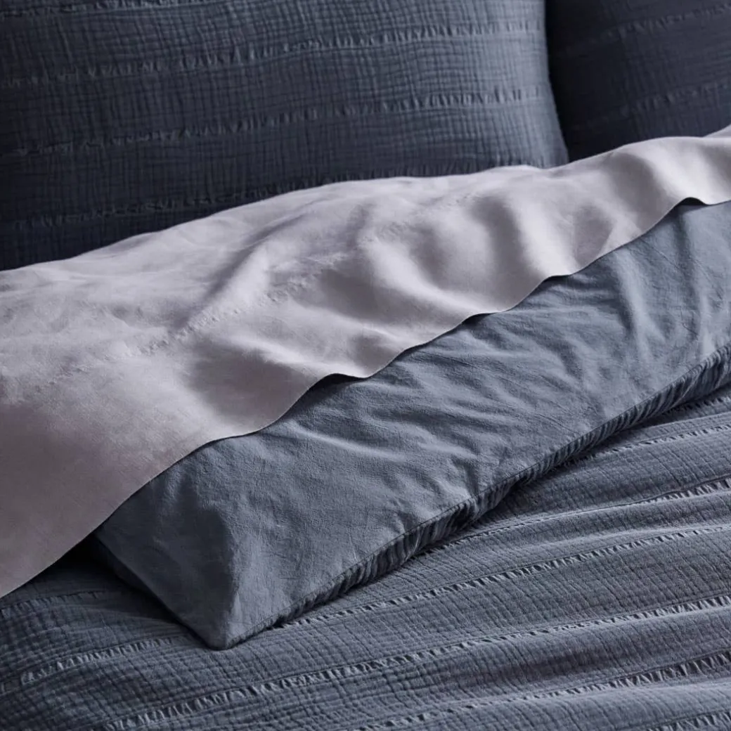 Bring a classic style to your bedroom with the Ramsay quilt cover in slate blue. Crafted from cotton with a vintage wash finish, this quilt cover combines a unique crinkle texture with subtle striped details. Coordinate with matching pillowcases to complete the look.