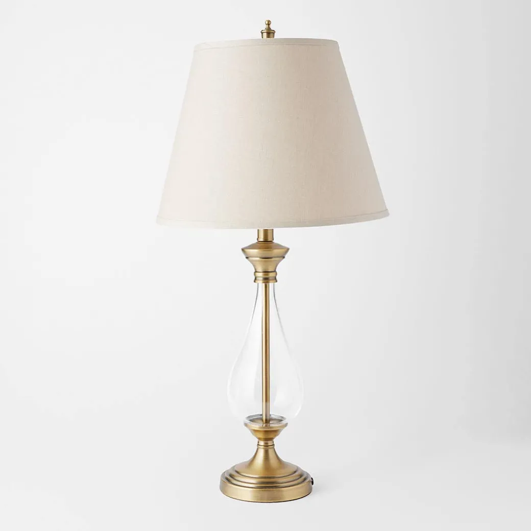 Sahara Brass Stem Glass Base Lamp: LAMP – W 36, D 36, H 70cm, SHADE – TOP W 22, BOTTOM W 36, H 27cm, 18949801