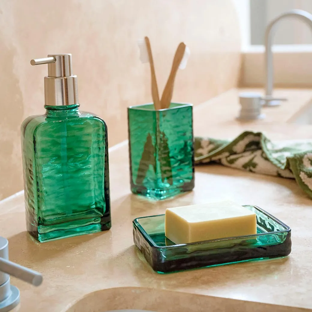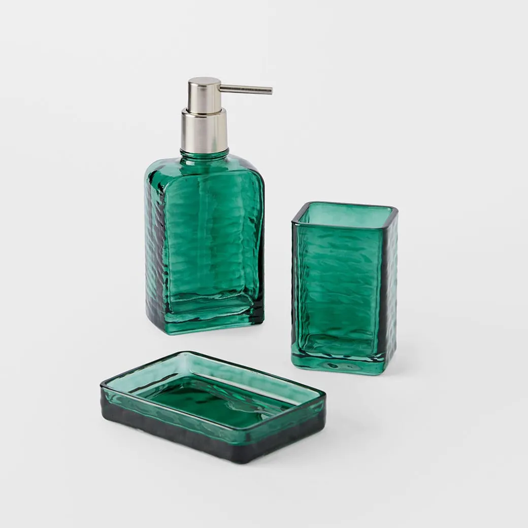 Add a hint of colour to your bathroom décor with the Staci Bathroom Accessories. Crafted from glass in a beautiful bottle green shade, this range includes a soap dispenser, tumbler, and soap dish – each sold separately.