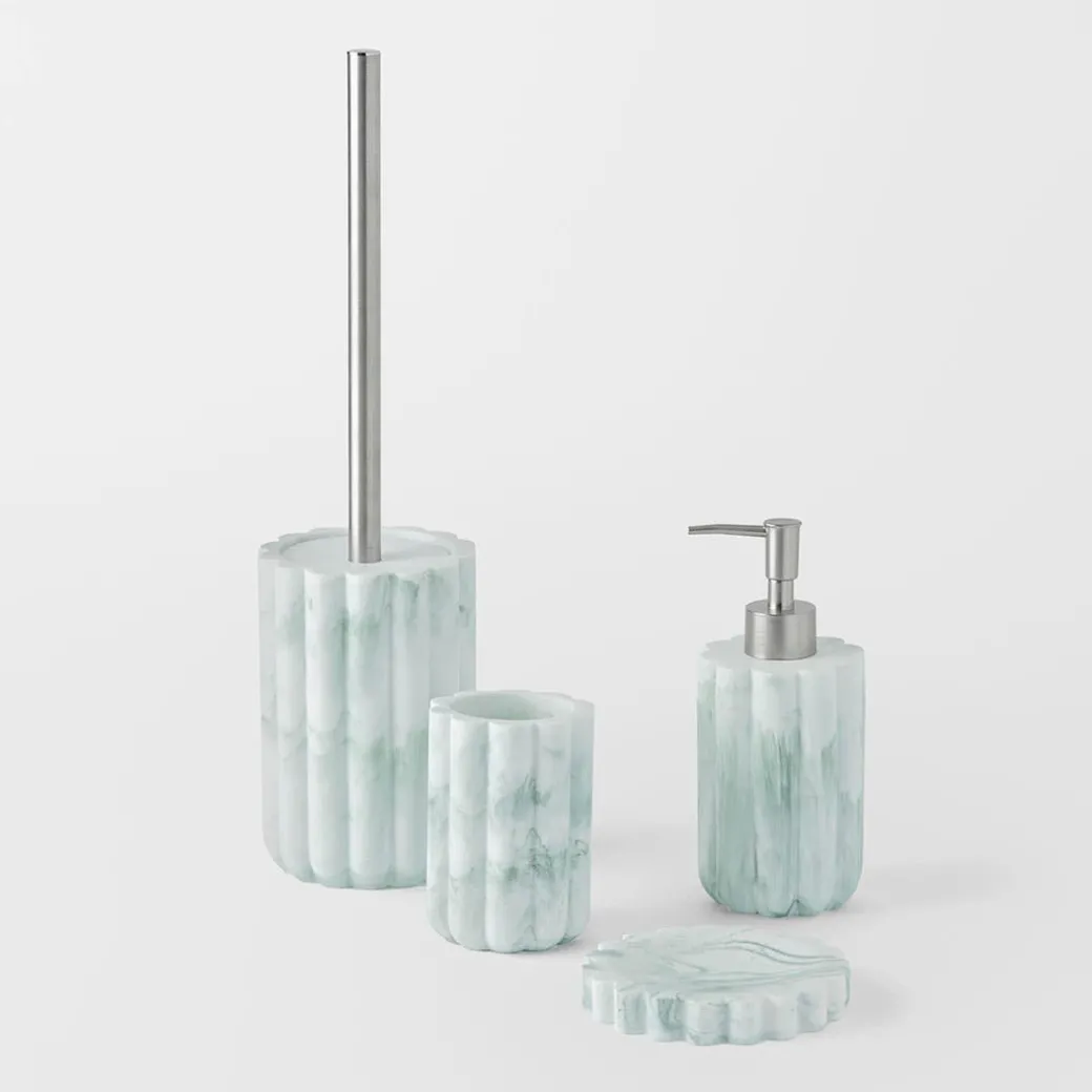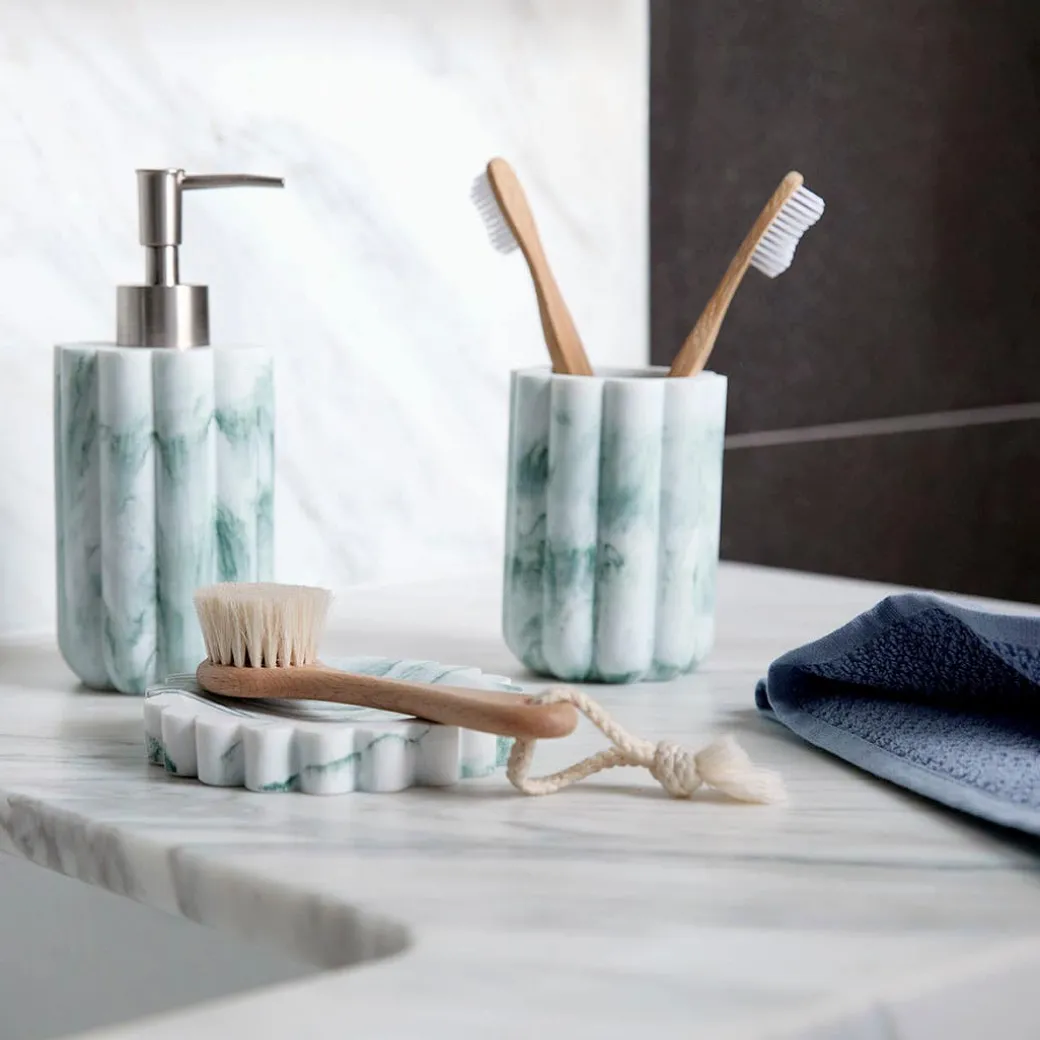 Add style and beautiful detail to your bathroom with the Tyler Bathroom Accessories. Crafted from fluted polyresin with a green marble finish, this range of accessories includes a soap dispenser, soap dish, toothbrush holder and toilet brush.